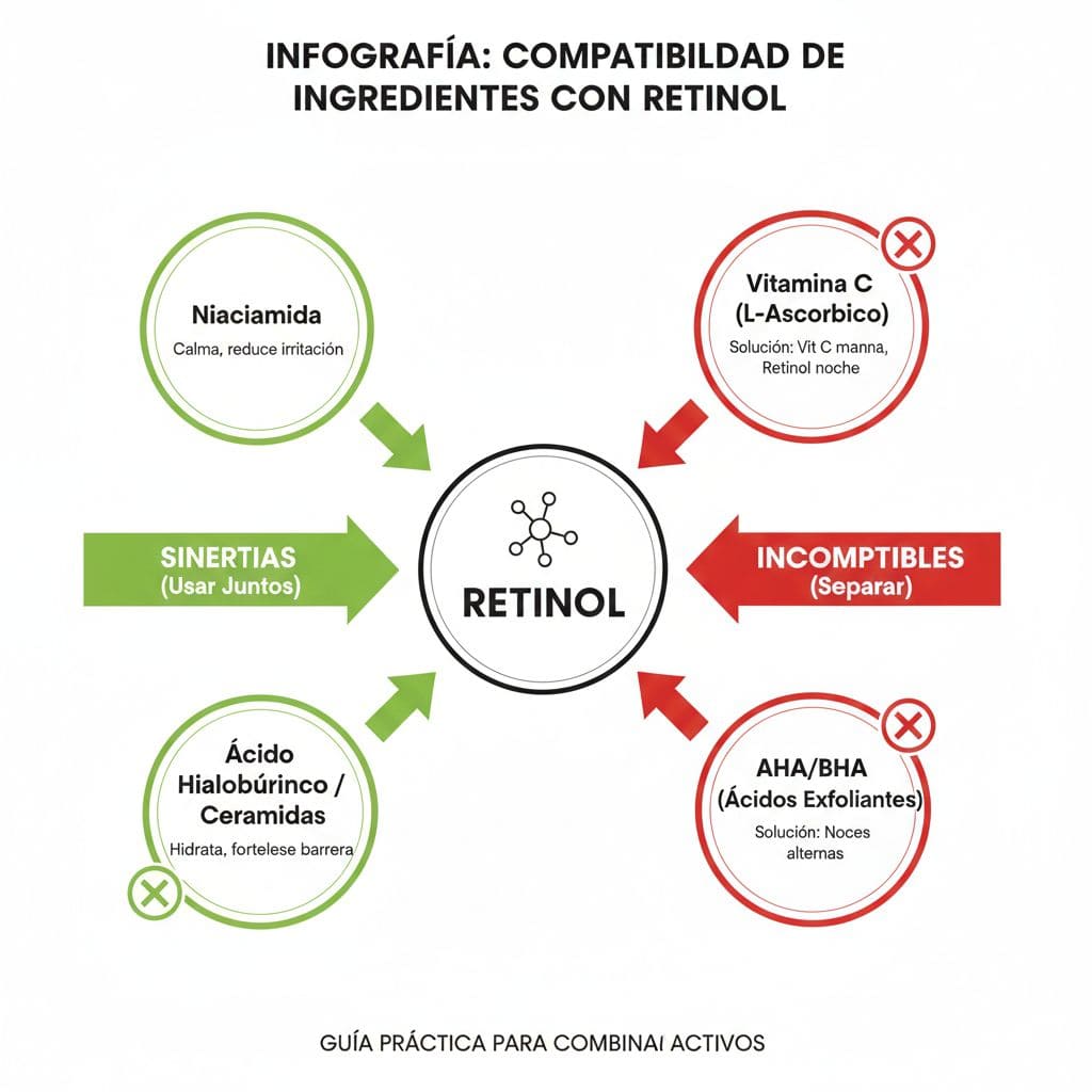 Pero: Evita otros activos potentes (retinoides, ácidos fuertes).