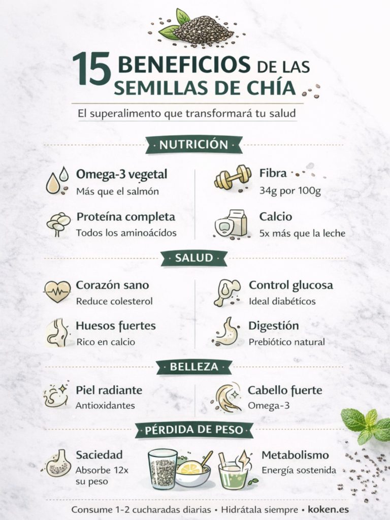 Desde mejorar la salud cardiovascular y digestiva hasta fortalecer huesos, aumentar la energía y embellecer la piel desde dentro, las semillas de chía son un verdadero tesoro nutricional que merece un lugar permanente en tu despensa.