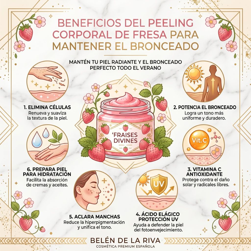En este artículo te explicamos por qué el peeling de fresa es el exfoliante corporal ideal para el verano, cómo usarlo correctamente y qué hacer después para que tu bronceado dure semanas más de lo habitual.