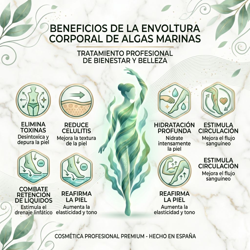 En este artículo te explicamos para qué sirve la envoltura de algas, cuáles son sus beneficios, cómo se usa paso a paso y por qué es el tratamiento favorito para combatir la celulitis y la retención de líquidos tanto en cabina como en casa.