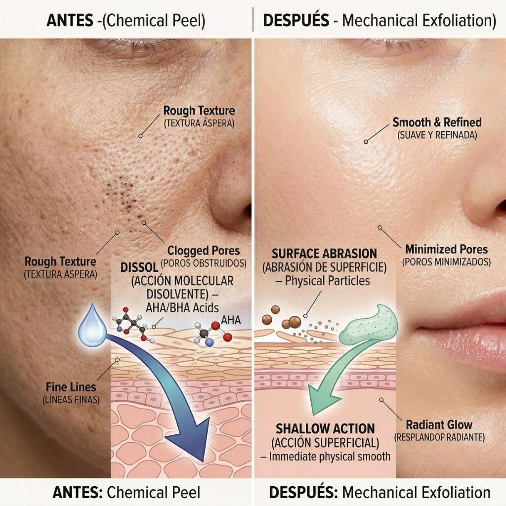 H3: Peeling vs Exfoliación Mecánica (Diferencias Clave)