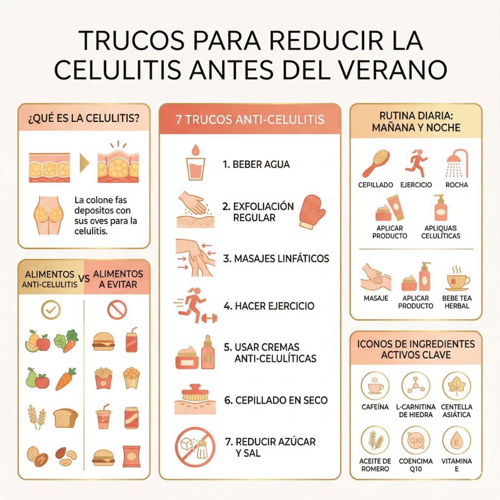 El verano se acerca y con él la inevitable pregunta: ¿cómo reducir la celulitis a tiempo para lucir el bañador con confianza? Si bien es cierto que la celulitis afecta a la gran mayoría de mujeres independientemente de su peso o complexión, también es verdad que con los productos adecuados y una rutina constante se pueden conseguir resultados visibles y reales. En esta guía te contamos los mejores trucos, productos y hábitos para combatir la piel de naranja antes de que llegue el calor.
